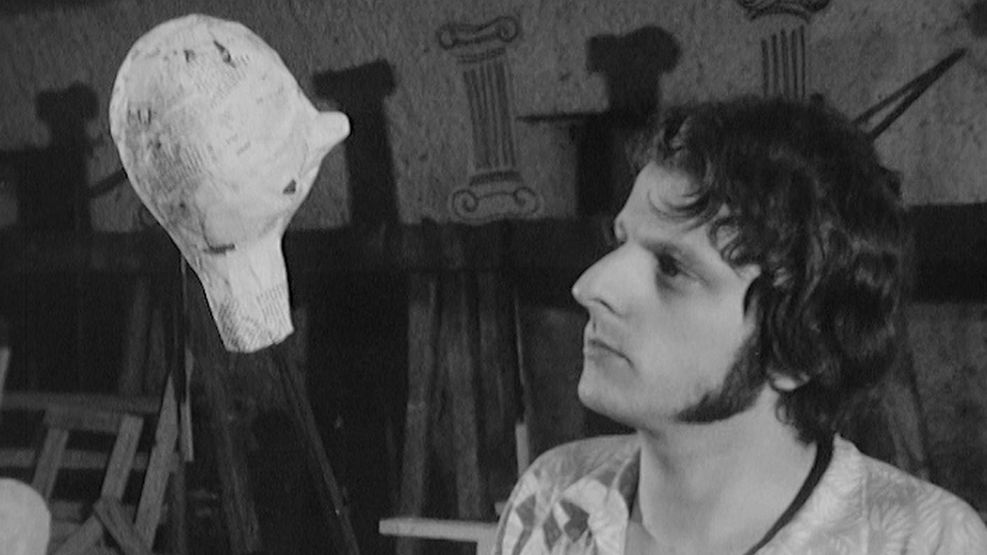 Negli Archivi RSI, è conservato un servizio in cui vediamo l’artista all’opera nel laboratorio alle porte di Lugano.