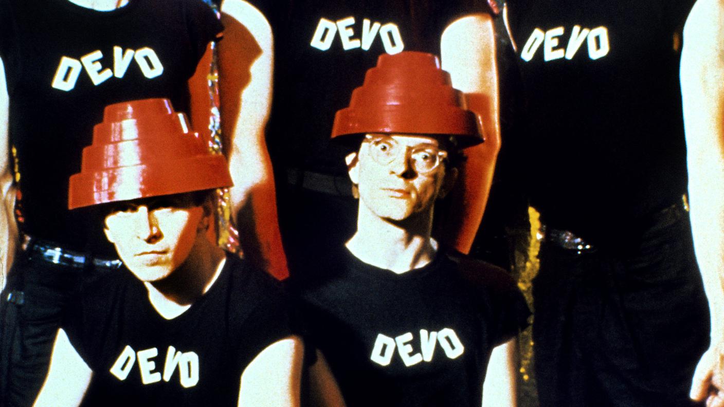 Figli del Sessantotto, nascono nel 1972 da Gerald Casale e Mark Mothersbaugh, studenti della Kent State University, il famigerato ateneo dell’Ohio al centro di una violenta repressione durante gli scioperi contro la guerra nel Vietnam. È tutto già nel nome stesso, Devo, che sta per de-evoluzione, concetto teorizzato dal filosofo ungherese Oscar Kiss Maerth nel libro The Beginning Was the End (1971), per cui per una questione di cannibalismo e scimmie l’evoluzione umana procederebbe al contrario: più passa il tempo, più diventiamo idioti. E l’indiscriminato uso delle armi è il punto di non ritorno. Non a caso, Casale e Mothersbaugh, che avevano assistito alla fine degli ideali con cui erano cresciuti e del Sogno Americano, seguito dalla nascita della società del consumo e annesso imbarbarimento del dibattito, prendono la palla al balzo: non conta che quello di The Beginning Was the End sia un tratto senza veri fondamenti scientifici, conta provocare, “svegliare la gente”.