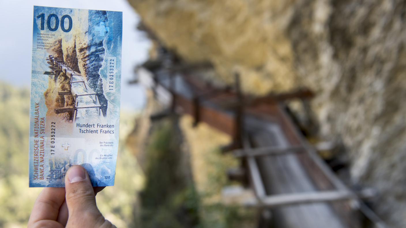 Si sarebbe potuto optare per laghi, fiumi o cascate, ma la Banca nazionale fece una scelta tanto azzeccata quanto simbolica e optò per raffigurare sulla banconota blu un bisse vallesano, nello specifico il Bisse d’Ayent, costruito verso la metà del 1400.