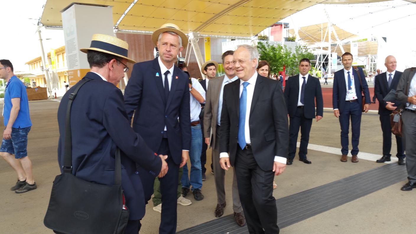 Johann Schneider-Ammann, capo del Dipartimento federale dell’economia, della formazione e della ricerca, giovedì è impegnato in una visita ufficiale al Padiglione Svizzero di Expo 2015 a Milano. Poco dopo le 10.30 è stato accolto dal numero uno di Presenza Svizzera Nicolas Bideau. Accompagnato dal console svizzero a Milano Massimo Baggi, Schneider-Ammann ha visitato le tre torri del padiglione prima di dare il via, con il suo discorso, alla giornata sulla sicurezza alimentare, indetta per oggi dalla Confederazione.