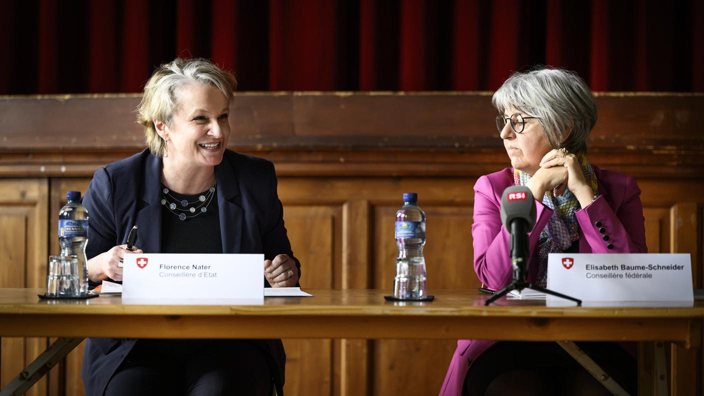 La consigliera di Stato Florence Nater con Elisabeth Baume-Schneider, che ha preceduto Beat Jans alla testa del Dipartimento di giustizia e polizia e che era giunta in visita lo scorso aprile
