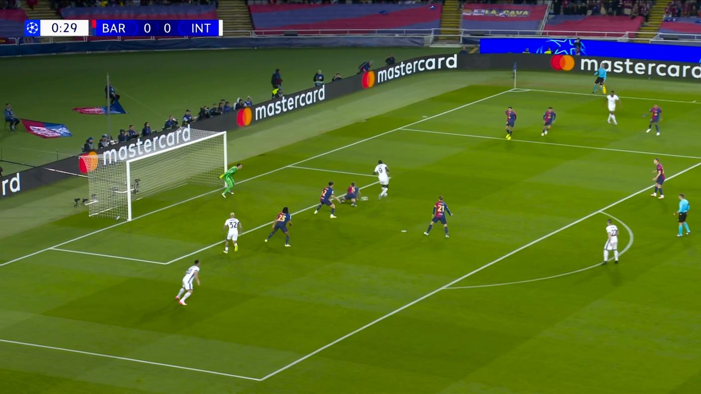 Sempre senza l’infortunato Lewandowski, i catalani hanno rischiato di perdere proprio Yamal, il quale ha accusato un fastidio agli adduttori nel riscaldamento, ma che è comunque sceso regolarmente in campo. I milanesi dal canto loro si sono presentati all’Estadi Olimpic Lluis Companys senza Pavard, ma con il recuperato Thuram. Ed è stato proprio il francese ad aprire le marcature dopo appena 35” con un colpo di tacco su assist di Dumfries. I padroni di casa hanno immediatamente reagito, mettendo sotto pressione la retroguardia nerazzurra, ma a colpire è stata ancora la squadra di Inzaghi, che al 21’ ha trovato il 2-0 grazie a Dumfries, a segno in acrobazia dopo un calcio d’angolo. Partita già finita? No, perché nel giro di 3’ Yamal ha danzato incredibilmente nello stretto ed ha battuto sul secondo palo Sommer, poi decisivo nel deviare sulla traversa un’altra invenzione del 17enne del Barça e in diverse altre occasioni. Nulla però l’estremo difensore svizzero ha potuto al 38’, quando, con i nerazzurri ormai in apnea, una splendida azione sull’asse Pedri-Raphinha-Ferran Torres ha permesso ai catalani di tornare in parità.