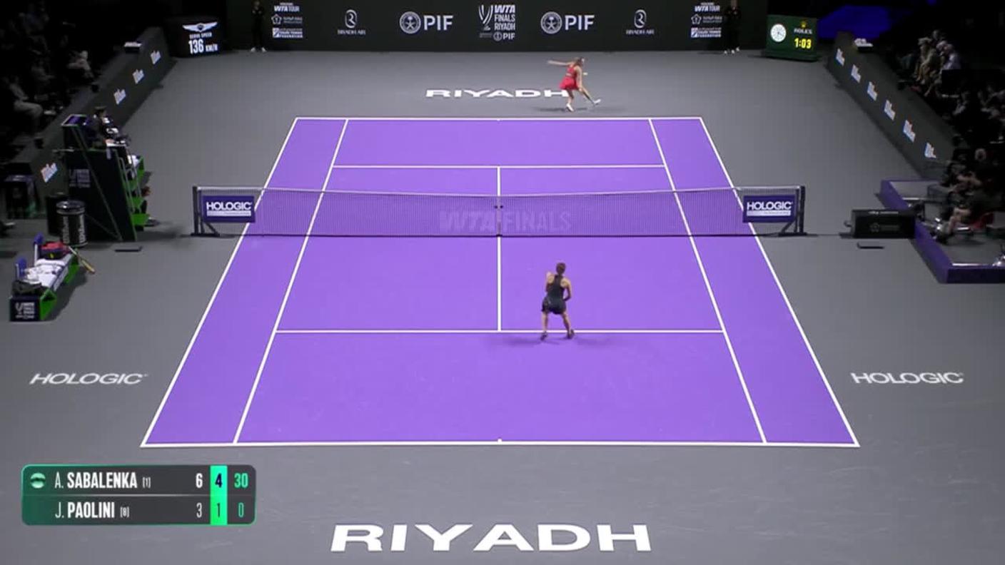 Si è aperta con una vittoria di Aryna Sabalenka (WTA 1) il Gruppo Steffi Graf, con la bielorussa che ha sconfitto Jasmine Paolini (8) con il risultato di 6-3 6-1. A Riad la vincitrice degli US Open ha spazzato via l’italiana in poco più di un’ora, conquistando ben cinque break. Per Sabalenka (alla ricerca del primo trionfo alle WTA Finals) si tratta del quinto successo consecutivo contro la toscana.