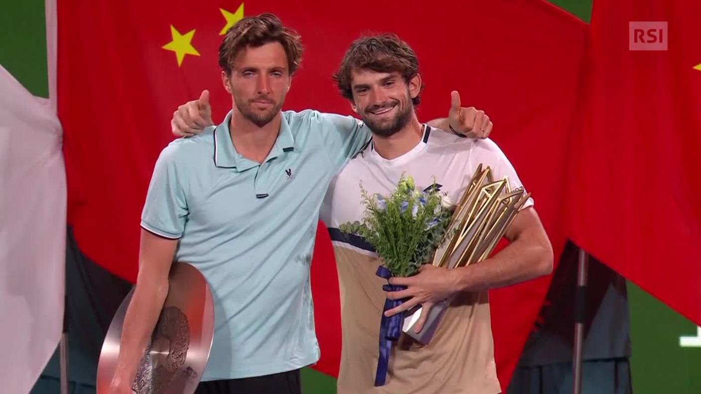 La sfida in famiglia a conclusione del Masters 1000 di Shanghai è andata a Valentin Vacherot (ATP 204). Sotto gli occhi attenti di Roger Federer, il monegasco ha coronato la sua favola, cominciata addirittura dalle qualificazioni, superando suo cugino Arthur Rinderknech (54) con il punteggio di 4-6 6-3 6-3 in 2h14’ di gioco. Dopo aver concesso il primo set al francese, il 26enne ha ribaltato l’incontro nel secondo e soprattutto trovato il break decisivo già nel primo gioco dell’ultima frazione, prima di lasciarsi andare a una gioia incontenibile. La cavalcata cinese permette ora a entrambi di fare un gran balzo in avanti nel ranking ATP, con il francese che entrerà in top 30 e il campione (primo monegasco a vincere sul circuito e tennista con la classifica più alta a trionfare in un Masters 1000) che addirittura passa dalla 204a alla 40a posizione.